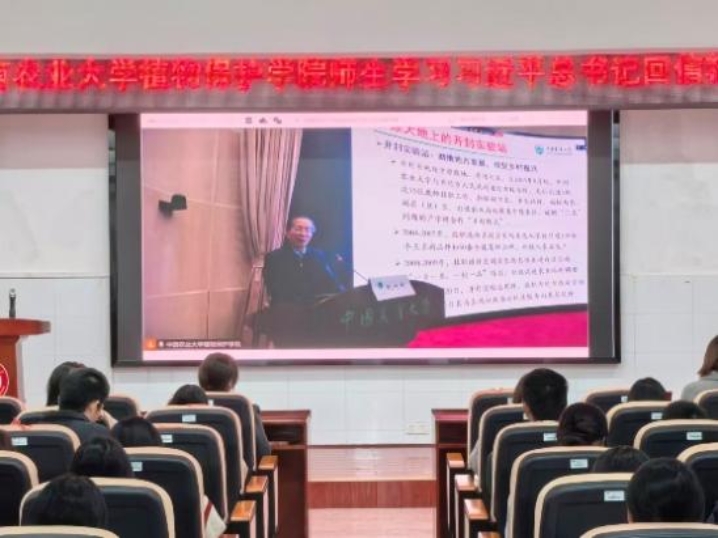 湖南农业大学植物保护学院全体师生积极响应,组织了线上与线下的集中观看。在16 教 529 会议室,植物保护学院党委书记张素芬、党务秘书张璐、团委书记欧阳倩以及 23-25 级同学共计 110 余人齐聚一堂,认真学习习近平总书记重要回信精神。