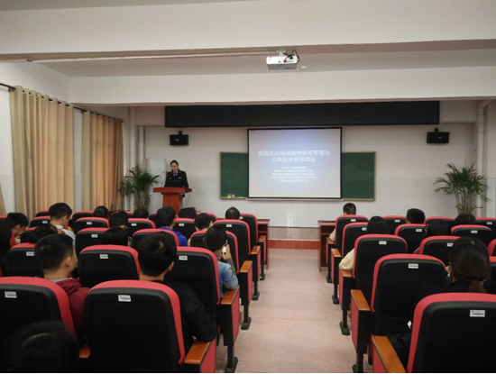 罗志萍高级农艺师用生动的语言、鲜明的事例,介绍了我国从最初的把守国门,到建立完善的进出境检疫体系,与国际规则接轨检疫管理的发展历程。把我国进出境动植物检疫管理与实践技术中的新理念,新技术第一时间传递给我校师生。