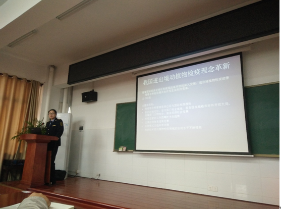 11月7日上午,湖南出入境检验检疫局罗志萍高级农艺师在十六教529作了《我国进出境动植物检疫管理与实践技术研究动态》的专题讲座。植物保护院教师、研究生、动植物检疫专业本科生共100多人聆听了讲座,讲座由罗坤老师主持。