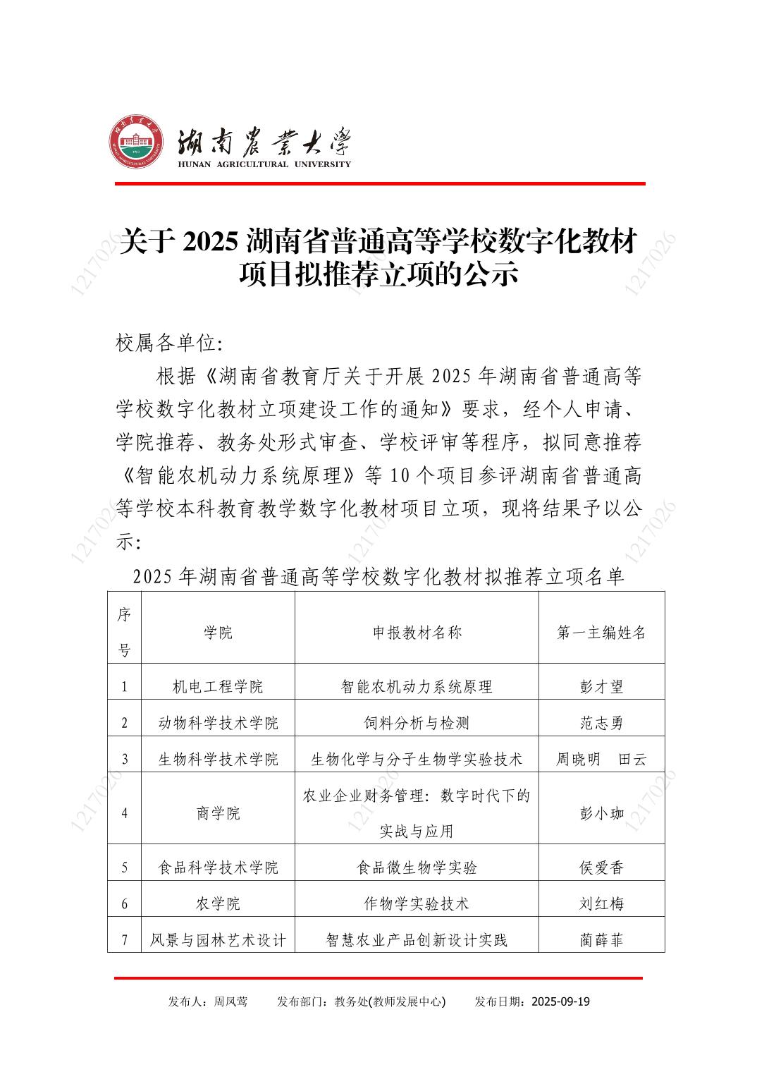 关于2025湖南省普通高等学校数字化教材项目拟推荐立项的公示