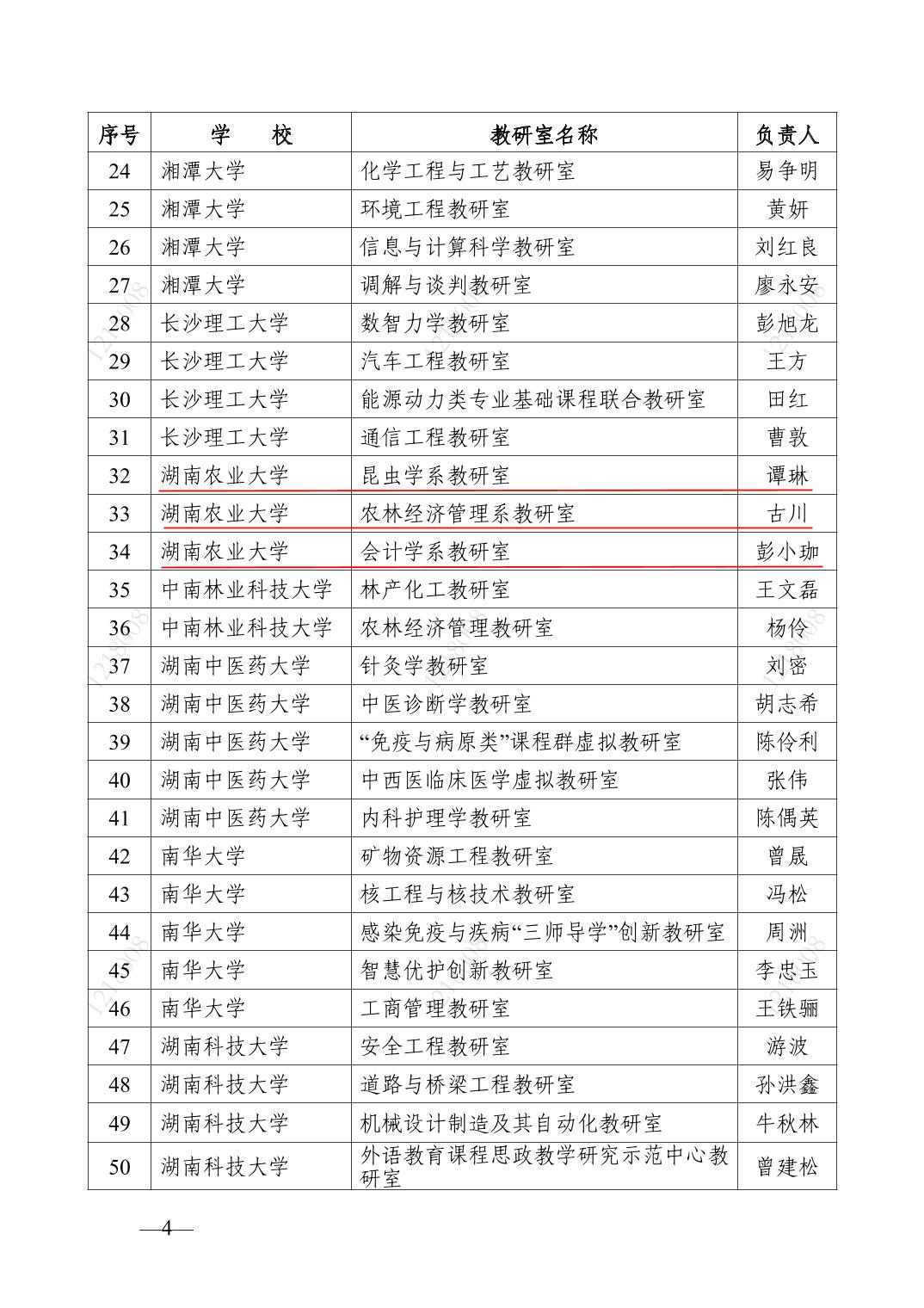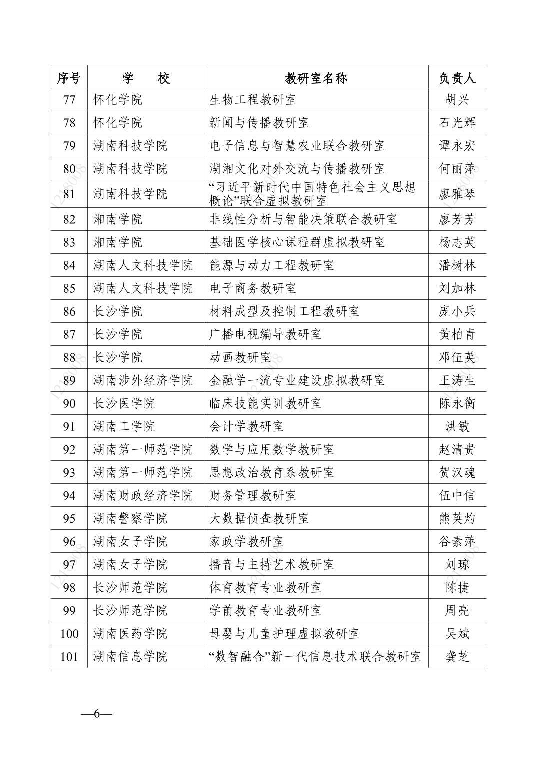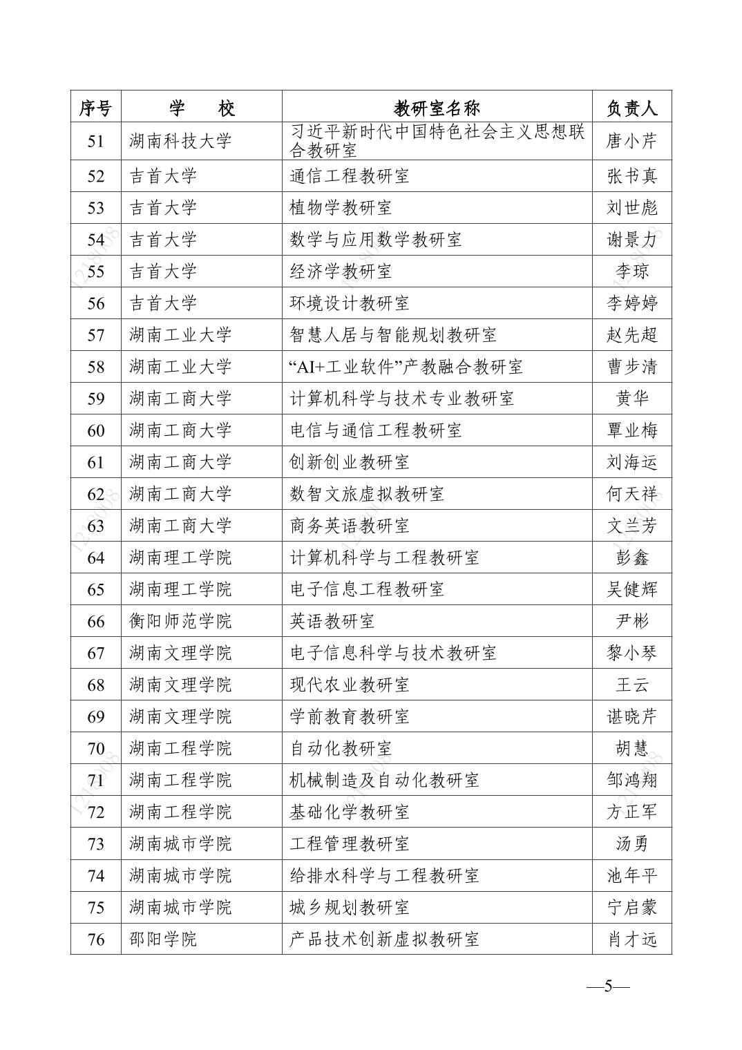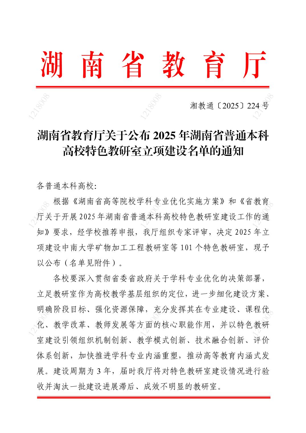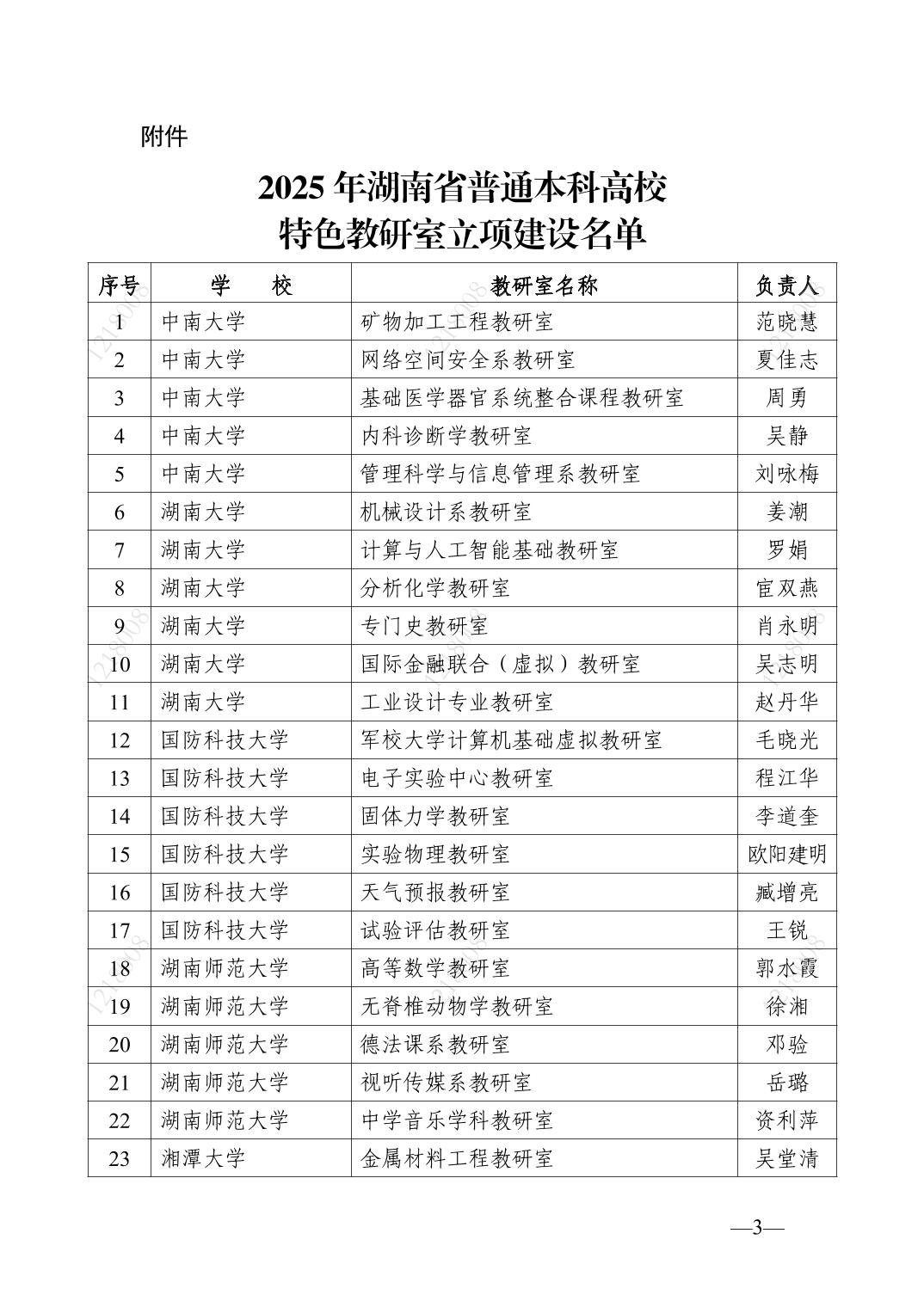 湖南省教育厅关于公布2025年湖南省普通本科高校特色教研室立项建设名单的通知