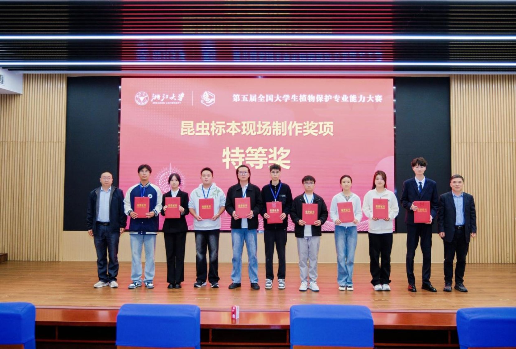 本次大赛由全国植物保护专业教学创新联盟、中国植物病理学会教学专业委员会等组织联合主办,浙江大学农业与生物技术学院承办。大赛以“智护丰稔,慧育生机”为主题,设立昆虫标本现场制作、昆虫微景观展示、植保专业知识视频制作与展示及学术交流报告等十个项目,吸引来自全国近50所涉农高校共计600余名师生同台竞技。