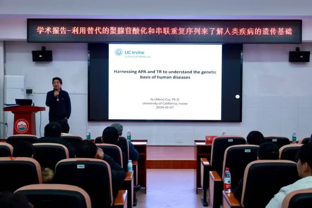 (本网讯 植保学院 吴双双)2025年1 月 7 日下午,植物保护学院优秀校友、现任职于美国加州大学(尔湾)医学院的研究员、博士生导师崔亚重返母校,在16教529会议室带来了一场以 “Harnessing APA and TR to understand the genetic basis of human diseases”为题的学术报告。学院教师代表、研究生及本科生踊跃参与。报告会由生物信息学博士学位点领衔人袁哲明教授主持。