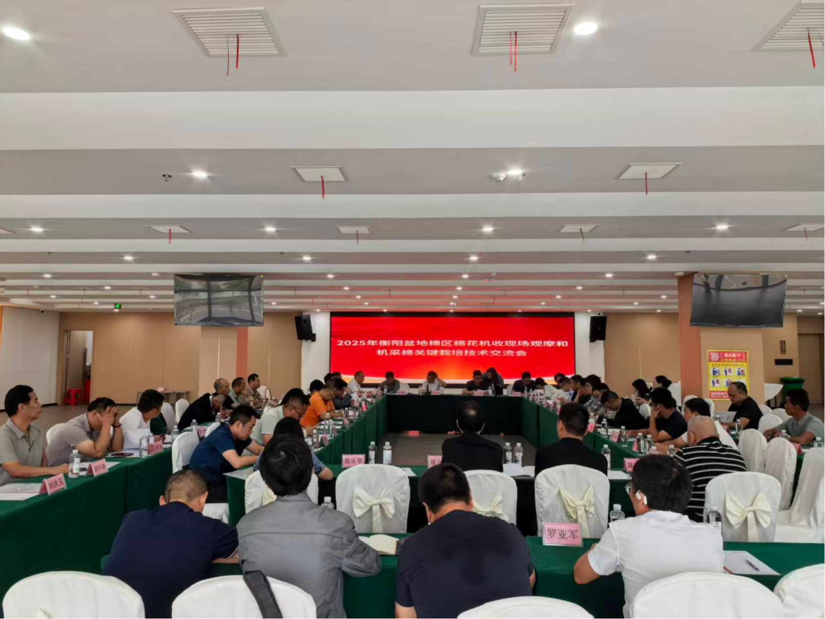 2025年10月12-14日,湖南省棉花产业技术体系植保岗位专家潘浪教授一行,前往衡阳市衡阳县参加衡阳盆地棉区棉花机收现场观摩和机采棉关键栽培技术交流会。本次会议由湖南农业大学主办,湖南省棉花协会、湖南省棉花产业技术体系共同承办,来自湖南省农业农村厅、湖南农业大学、湖南省农业科学院、湖南省棉花产业技术体系、湖南省棉花协会的领导与专家,以及衡阳盆地棉区各植棉大县的相关负责人和种植大户等70余人参加了会议。