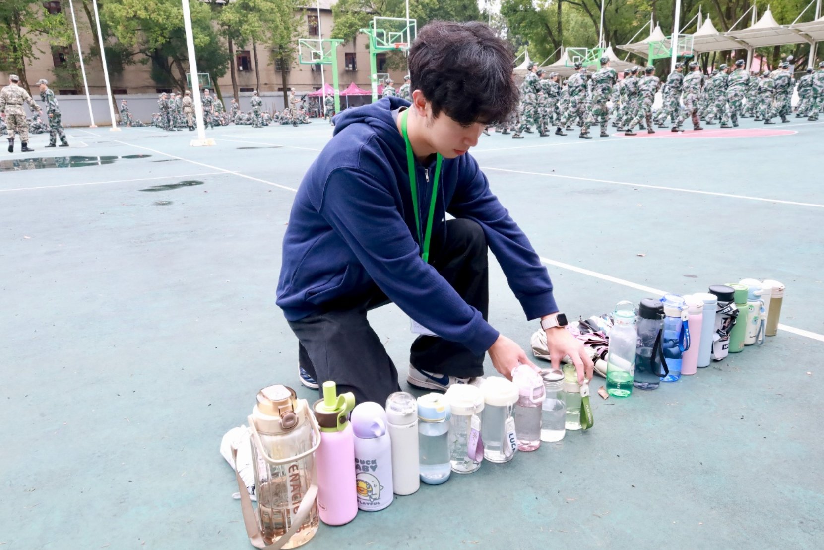 训练间隙,微风成了最佳伴奏。当教官带领大家拉起歌,嘹亮的歌声驱散了陌生,同学们从并肩训练的同伴,变成了能共赴风雨的集体。而在训练场的角落,助班们正默默将新生们的水杯排列整齐、为大家接好水,这些细微的关怀如星光点缀,让迷彩的画卷更显暖韵。