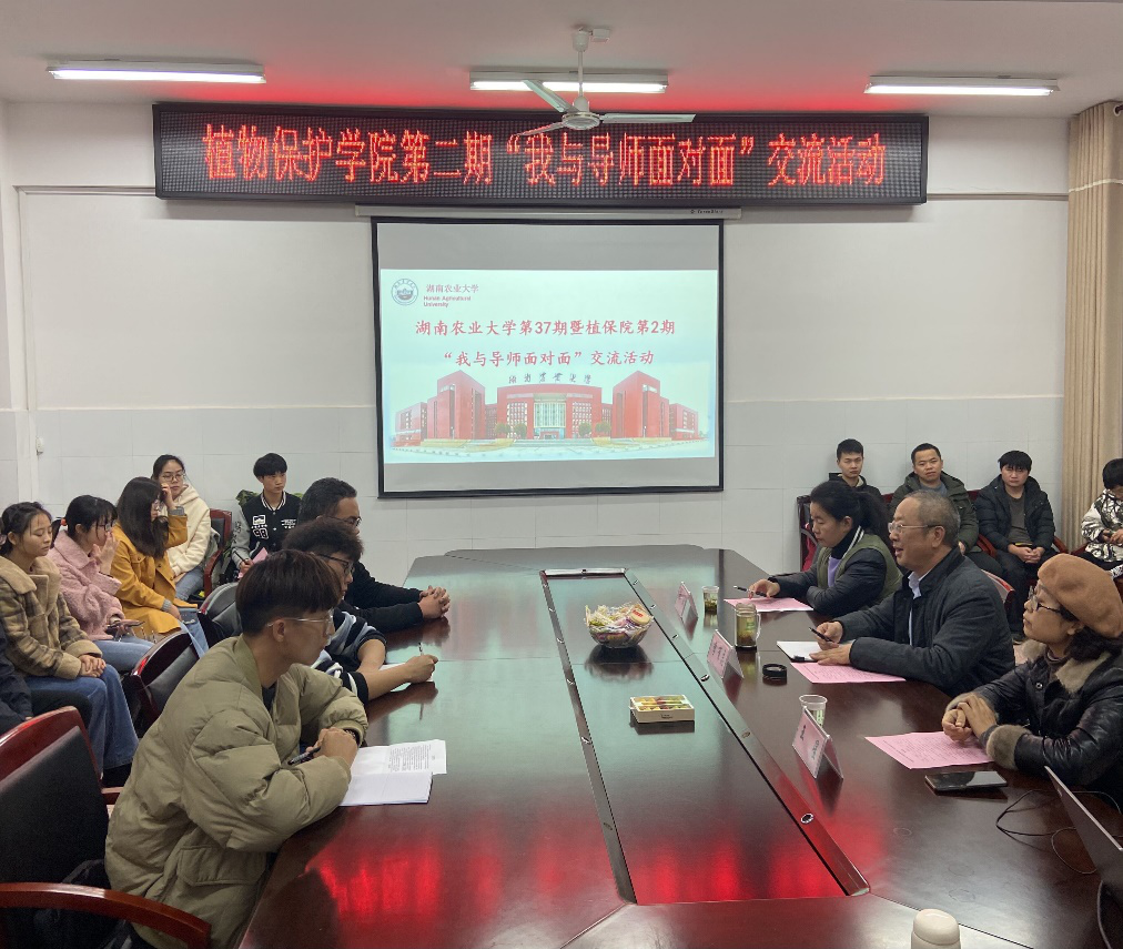 2020年11月24日晚7点半,在植物保护学院16教525会议室成功举办了湖南农业大学植物保护学院第2期“我和导师面对面”农业昆虫与害虫防治专业专场交流活动。植物保护学院院长、农业昆虫与害虫防治学位点博士点领衔人李有志教授、农业昆虫与害虫防治学位点导师王星教授、谭琳副教授作为导师代表,农业昆虫与害虫防治专业全体研究生和部分本科生参与了本次交流活动。导师们和学生们围坐在一起,面对面推心置腹,整个会场氛围和谐,活泼,热烈。