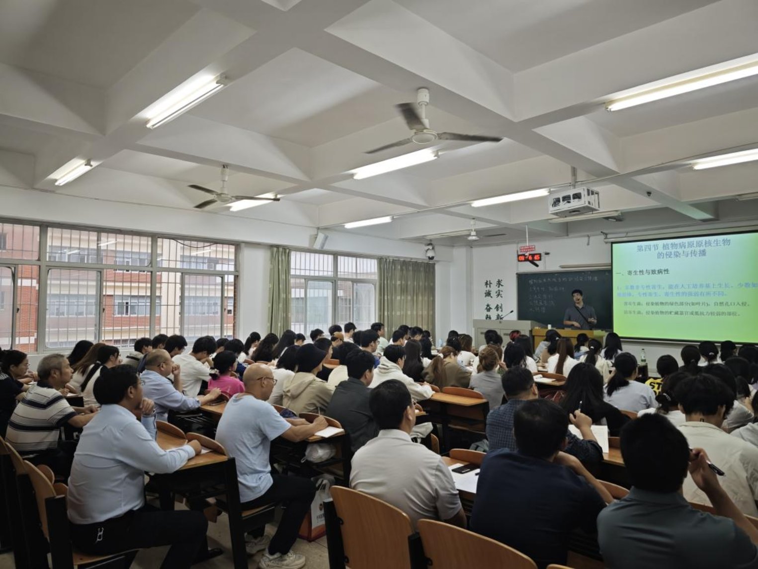 (本网讯 植保学院 魏毓莹)为提升学院青年教师的课堂教学水平,充分发挥教师的“传、帮、带”作用,9月30日下午,植物保护学院在9教北203开展青年教师公开课活动,主讲教师为2023年新进教师廖金星博士。学院领导、教学督导、各基层教学组织负责人及专任教师等二十余人参加了此次活动。