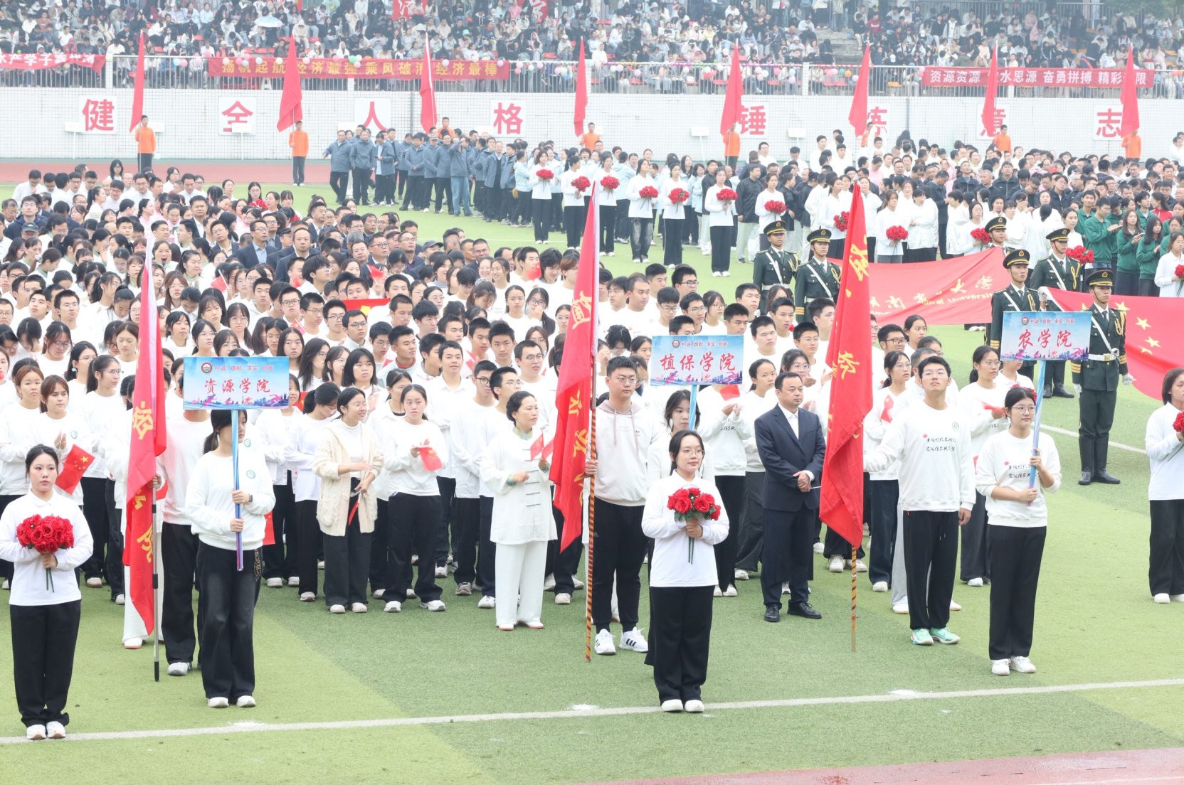 30日上午,运动会正式开幕。植物保护学院方阵迈着整齐有力的步伐,高呼“植保植保,湘农领跑”的嘹亮口号,以坚定的目光和饱满的精神状态通过主席台,展现了植保人奋发向上的精神风貌。