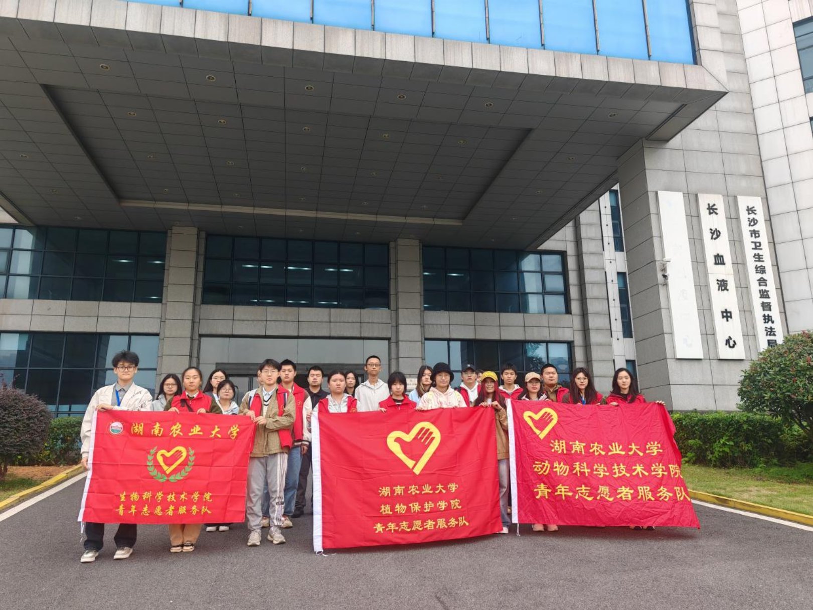 (本网讯 植物保护学院 李胜雪)10月26日上午十点,湖南农业大学植物保护学院、动物科学技术学院与生物科学技术学院的青年志愿者服务队联合组织开展了“爱心传递,生命接力”无偿献血活动。血液作为医疗抢救的关键资源,无法人工合成且保存期短,只能依靠社会爱心捐献。本次活动旨在引导大学生践行奉献精神,以实际行动支援血库储备,为生命助力,为希望接力。
