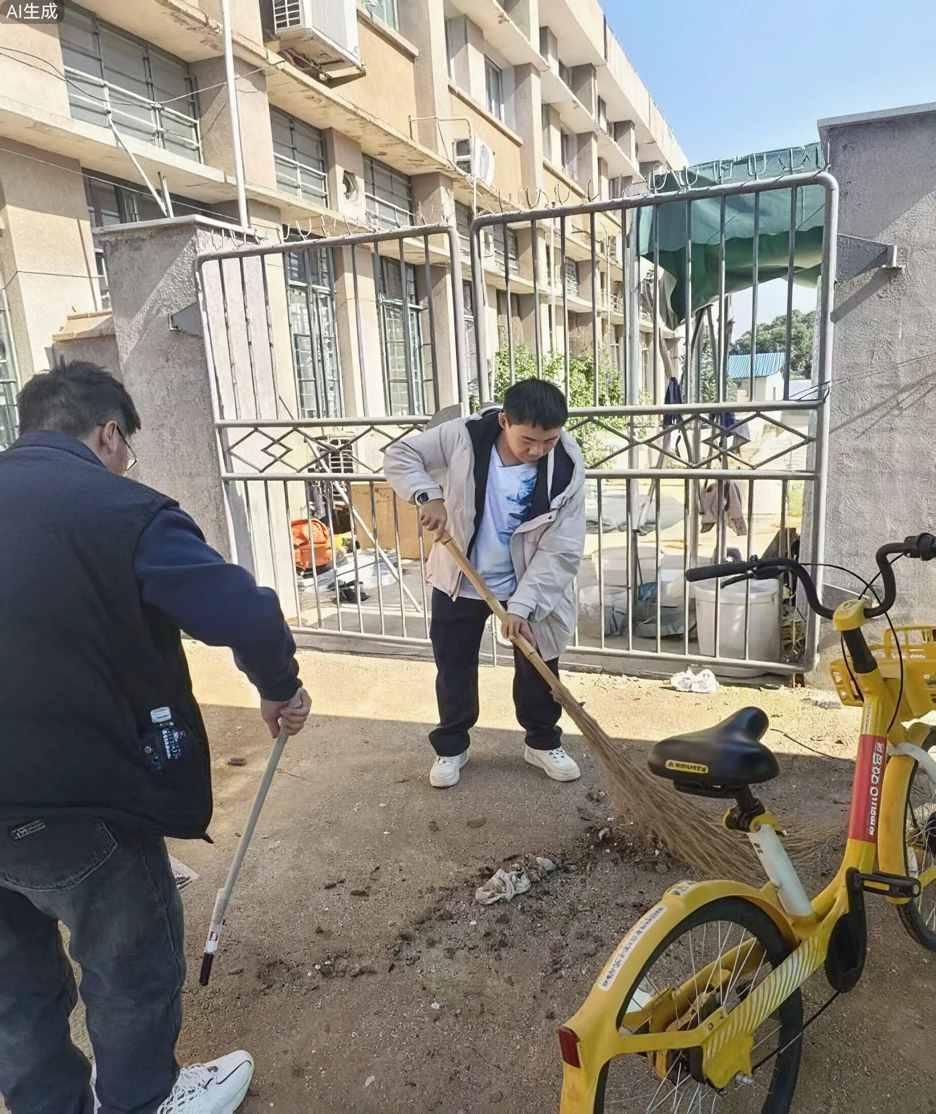 活动现场,大家分工明确、配合默契,有的细致捡拾角落杂物,有的认真清理绿化带周围的落叶,还有的负责整理散置的工具与物料,力求不遗漏任何卫生死角。尽管天气微热,志愿者们依旧热情不减,汗水见证着他们对校园环境的用心守护。