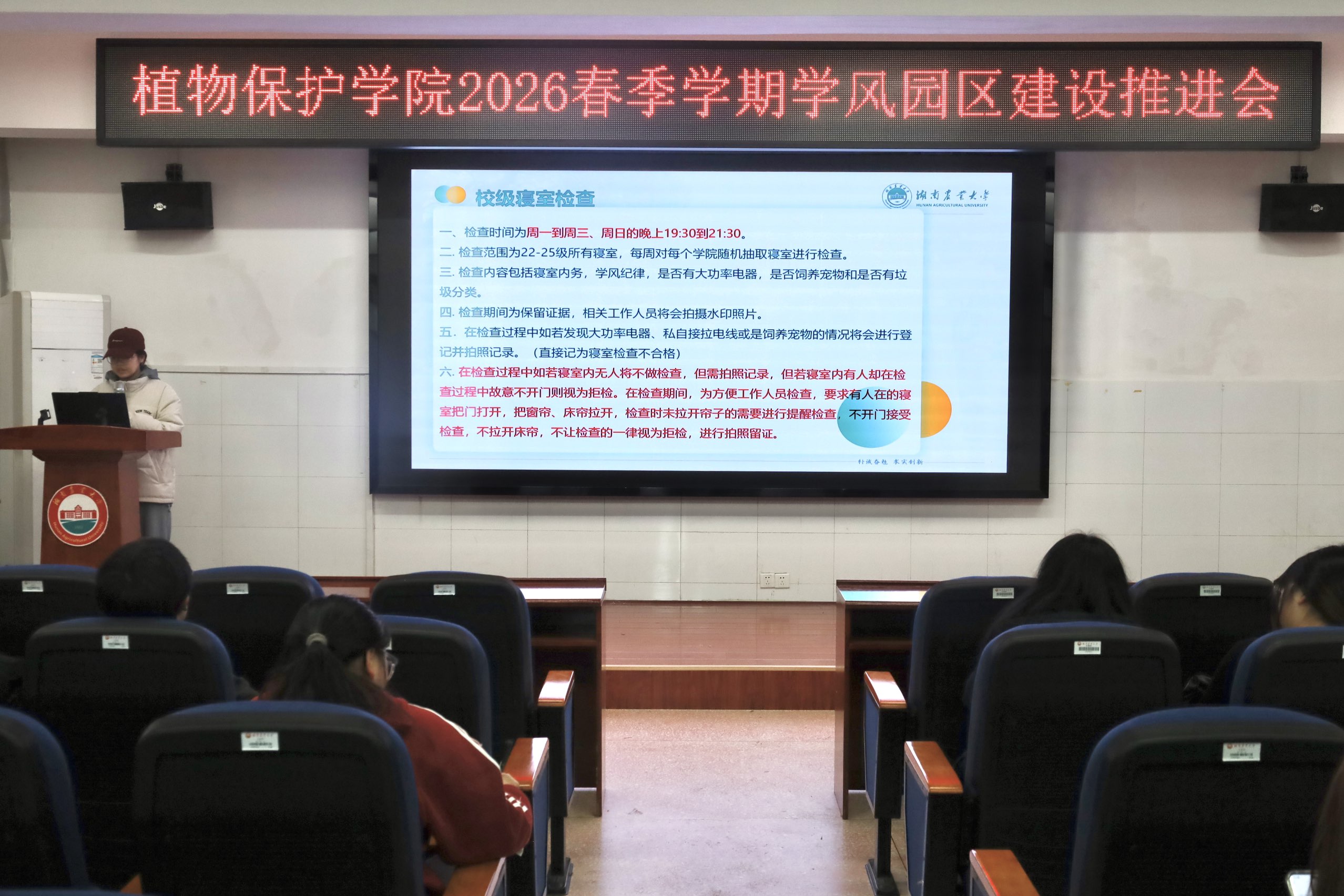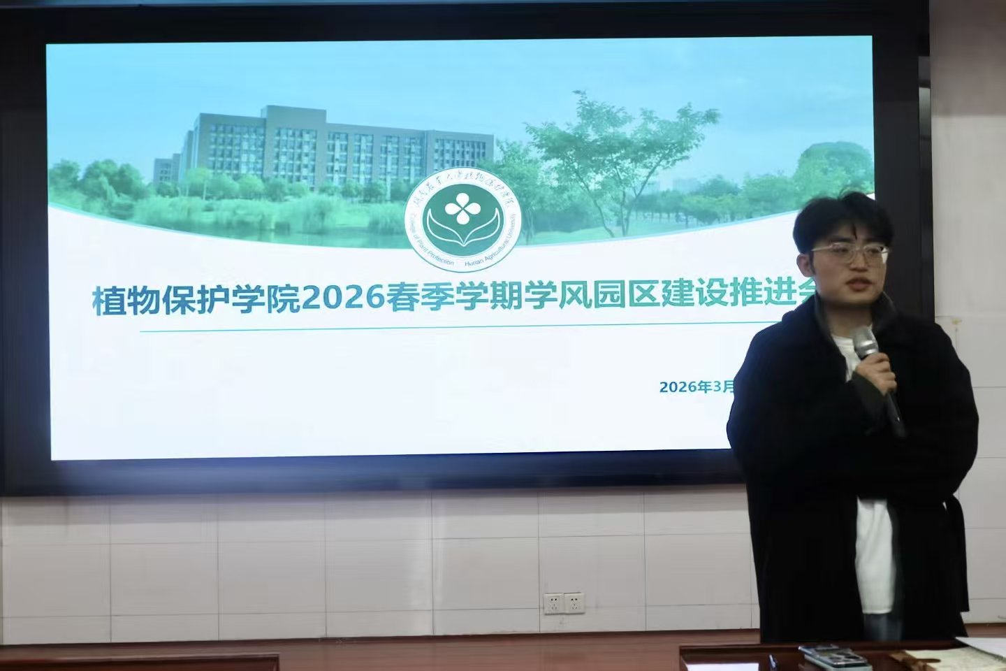 (本网讯 植物保护学院 陈靖一)为持续强化学风建设,夯实园区育人阵地,3月23日,植物保护学院召开2026年春季学期学风园区建设推进会。会议聚焦安全稳定、学风建设等重点环节进行部署,旨在营造安全有序、勤学奋进的校园生活氛围,全面护航学生成长。学院学风园区建设专干李奕辉老师及各年级主要学生干部参加了本次会议。