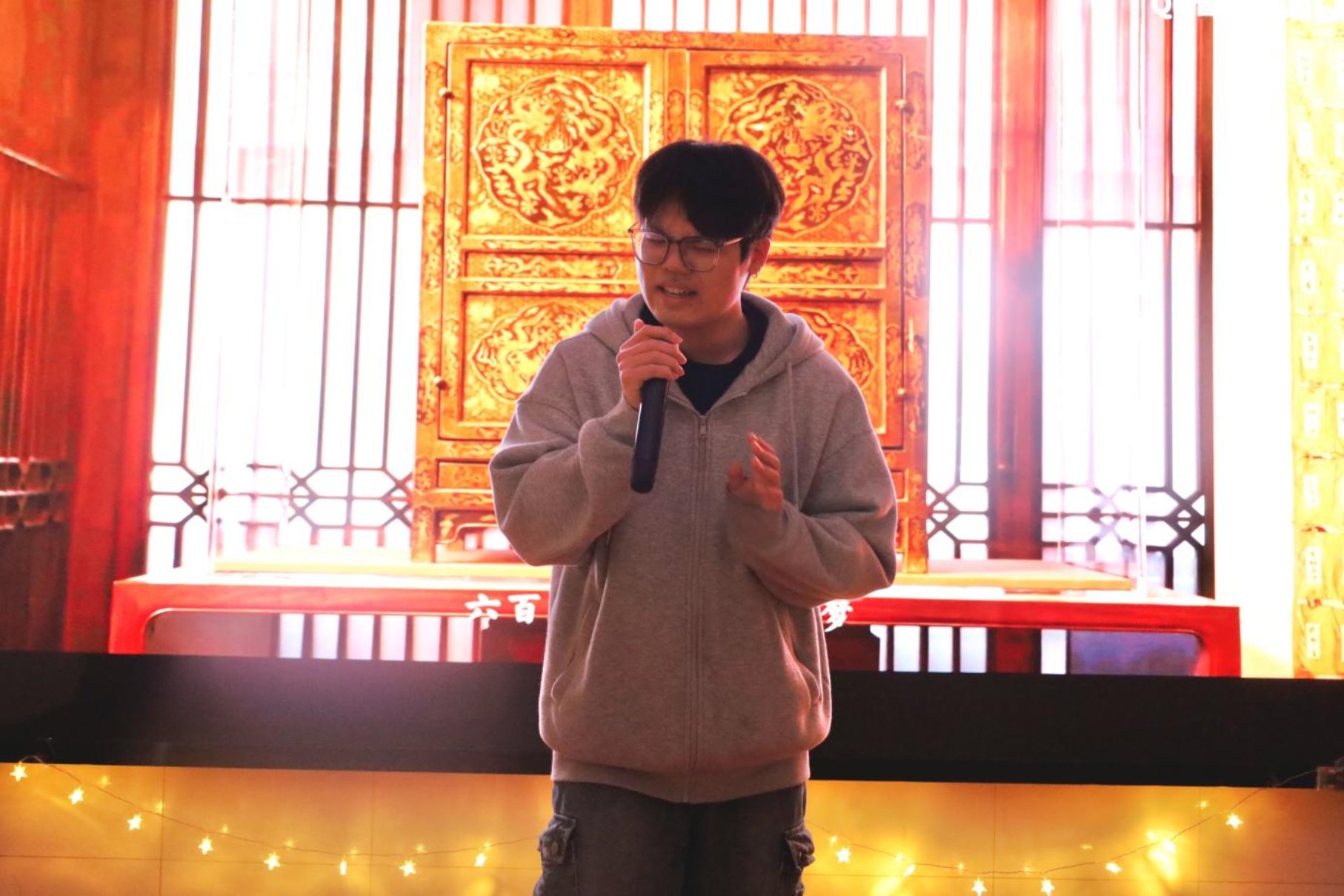 为增强现场互动氛围,大赛设置了音乐主题游戏环节。在场同学踊跃参与,现场气氛活跃而有序,有效缓解了比赛的紧张情绪,增添了温馨与欢乐。上届获奖选手万尹僖也应邀返场助唱,以温暖歌声为比赛注入感动与温情。
